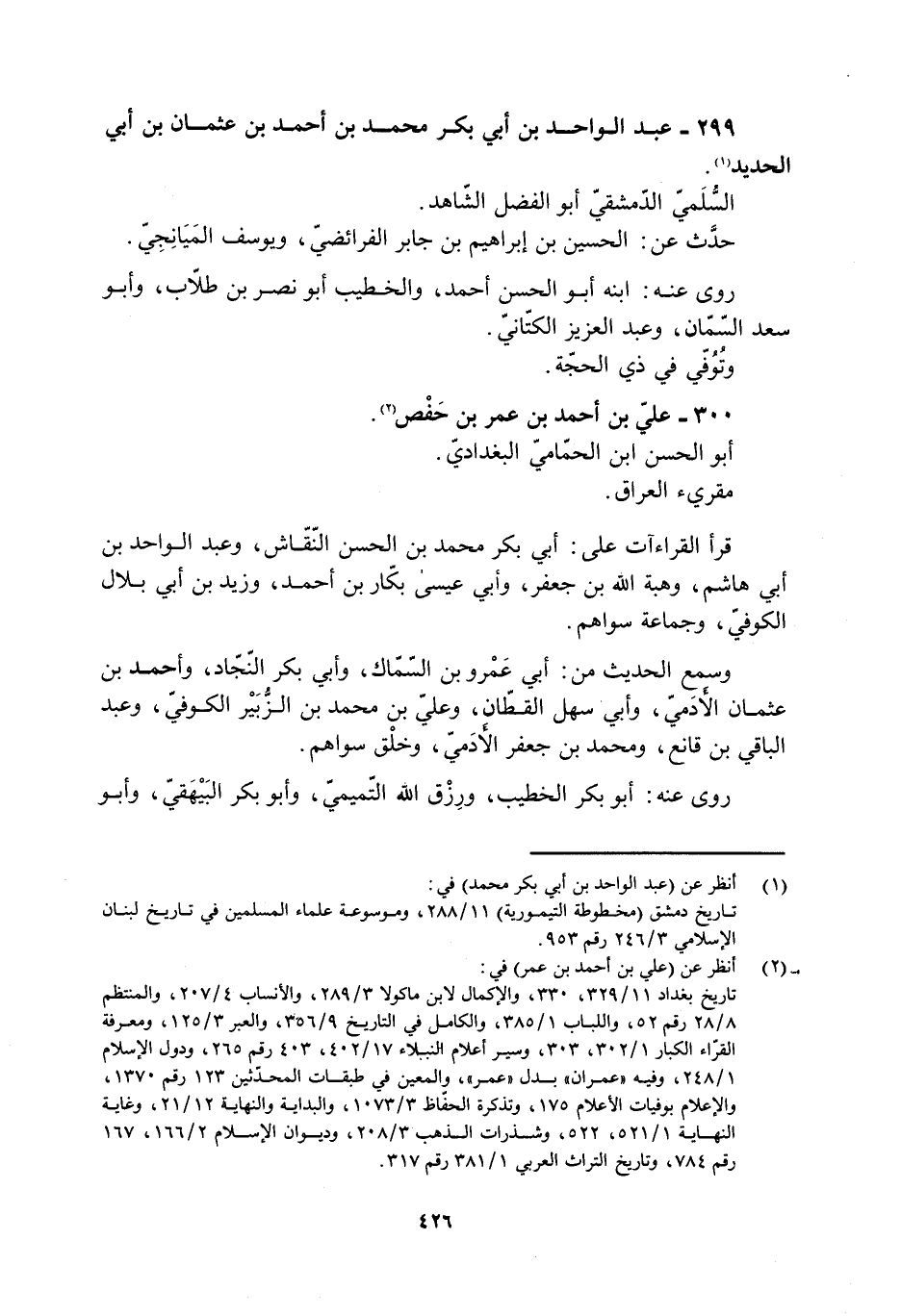 299- عَبْد الواحد بْن أَبِي بَكْر محمد بْن أحمد بْن عثمان بْن أَبِي الحديد [1] .