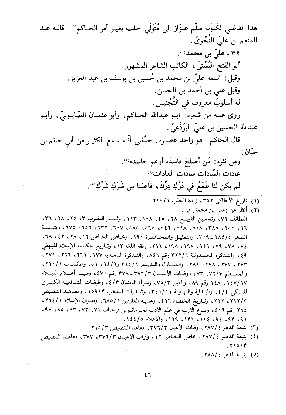 [4] يتيمة الدهر 4/ 287، خاص الخاص 12، وفيات الأعيان 3/ 376، 377، معاهد التنصيص 3/ 215.
