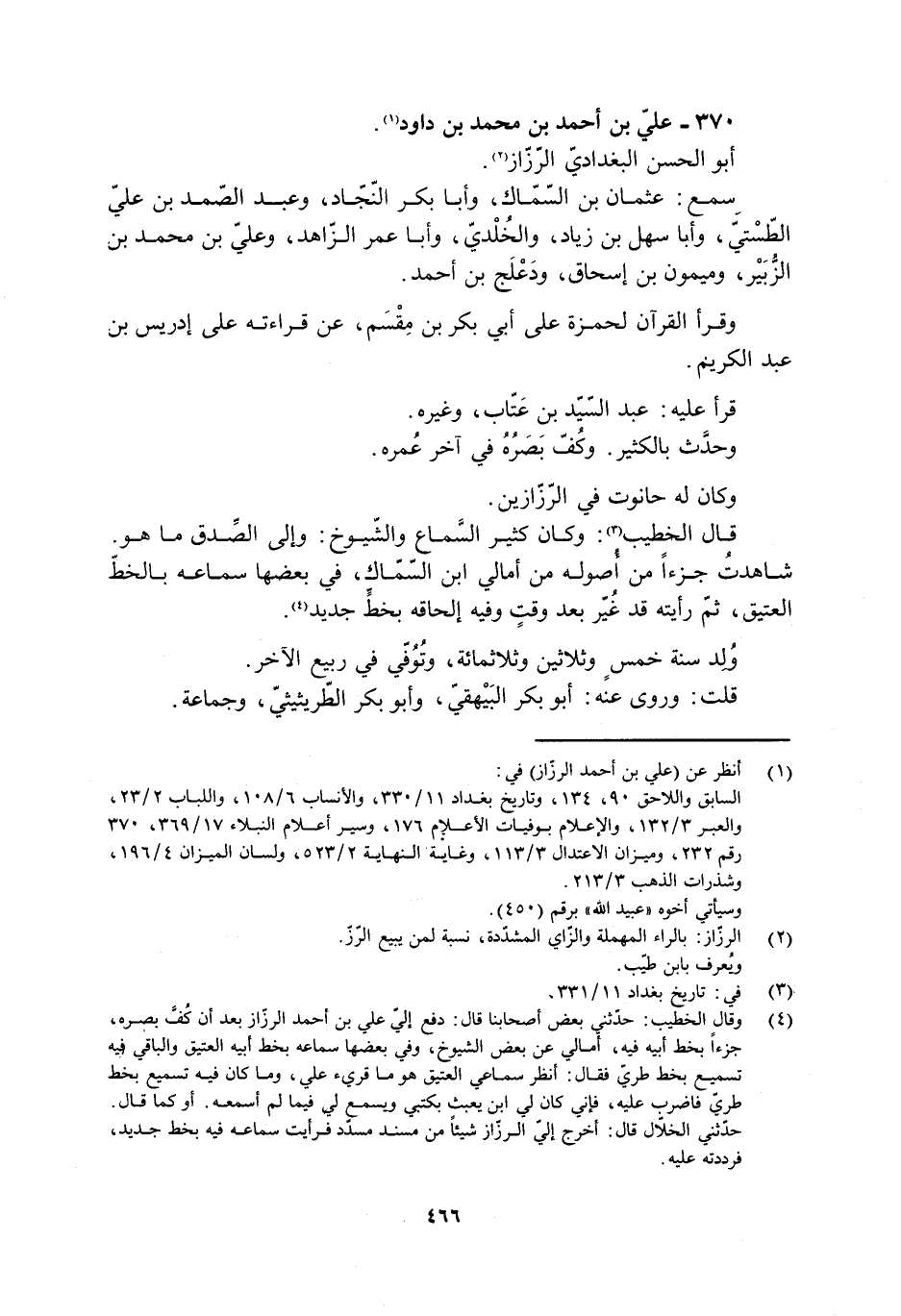[2] الرزّاز: بالراء المهملة والزّاي المشدّدة، نسبة لمن يبيع الرّزّ.
