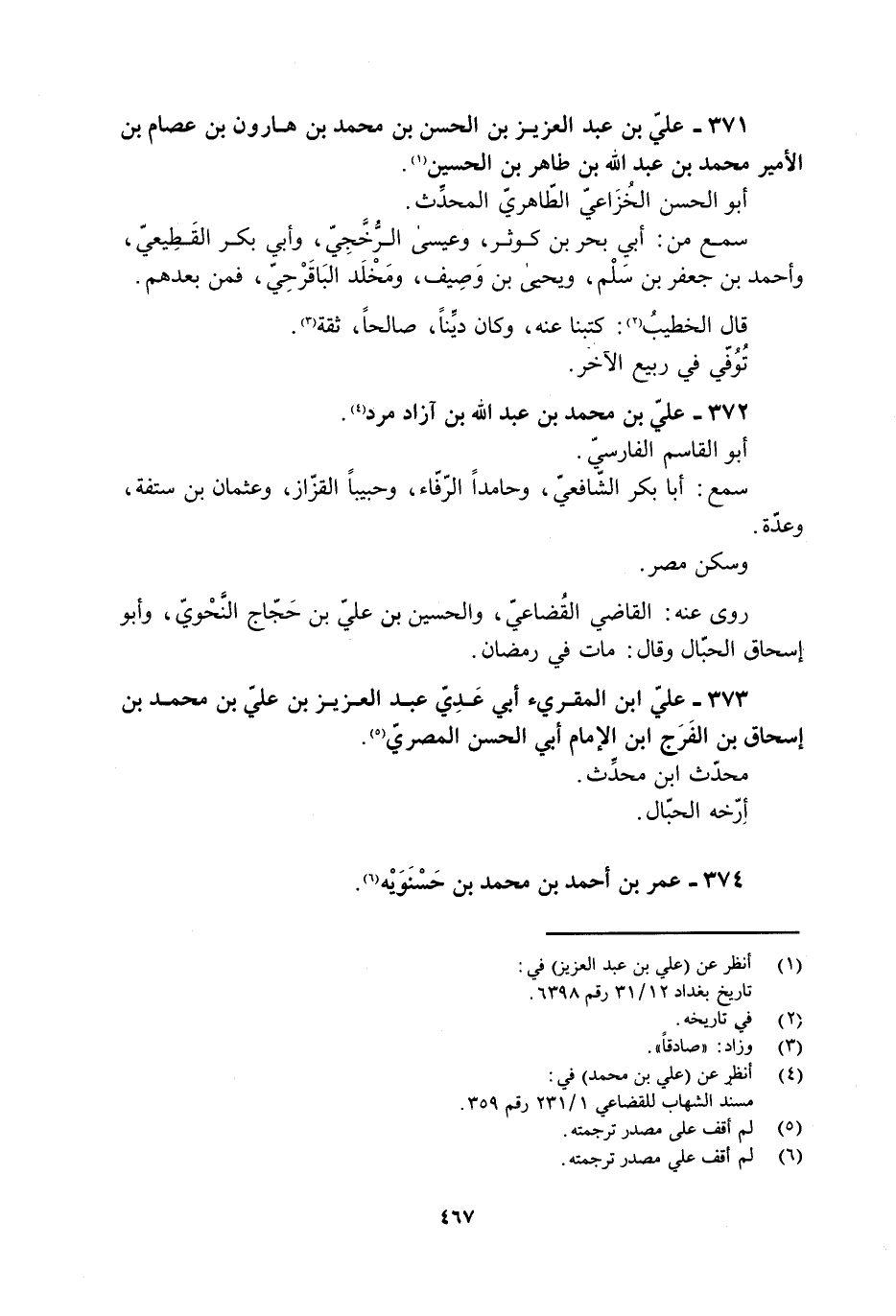 373- عليّ ابن المقرئ أَبِي عَدِيّ عَبْد العزيز بْن عليّ بن محمد بن إسحاق بن الفرج ابن الإمام أَبِي الحَسَن الْمَصْرِيّ [5] .