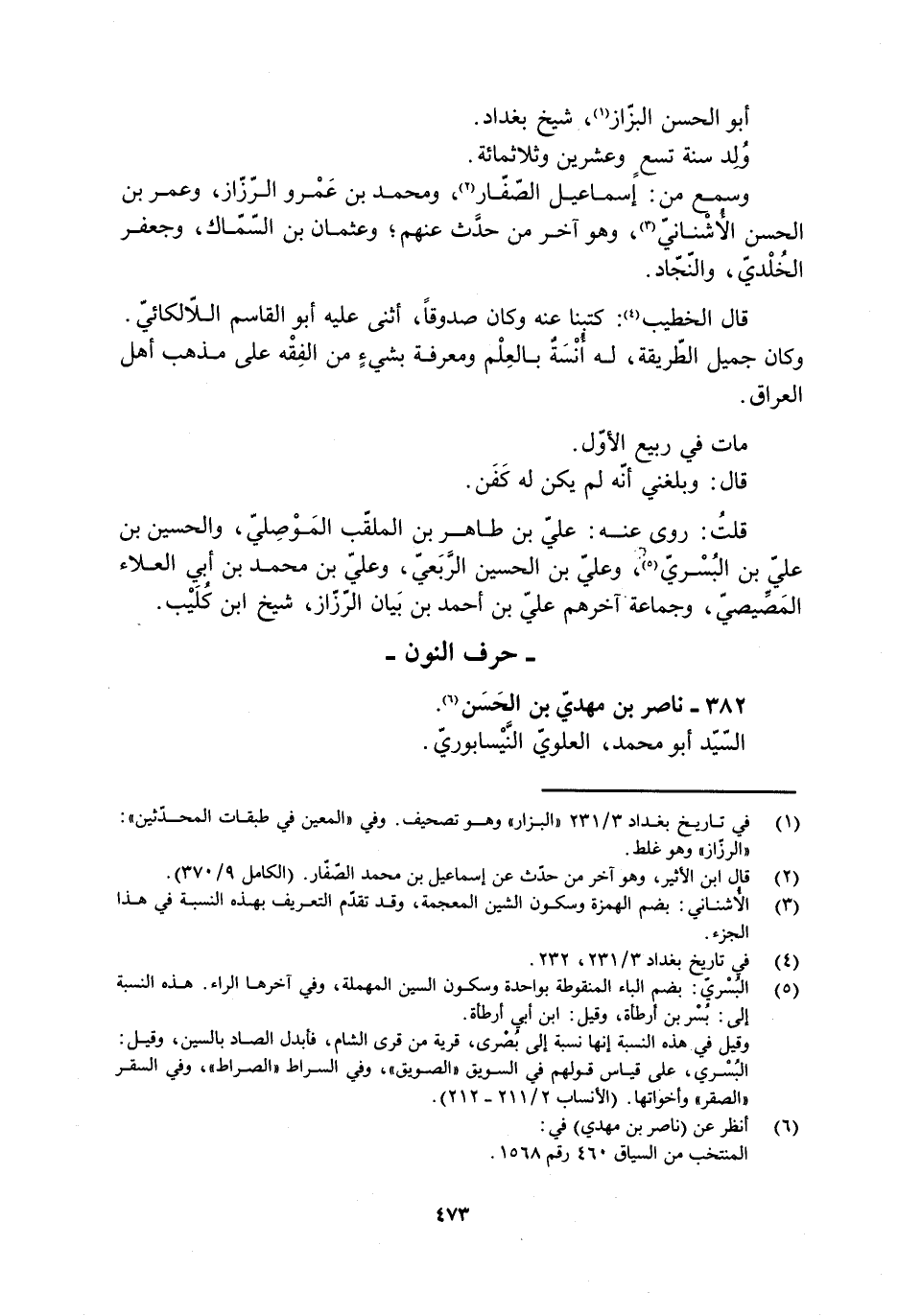 [1] في تاريخ بغداد 3/ 231 «البزار» وهو تصحيف. وفي «المعين في طبقات المحدّثين» :