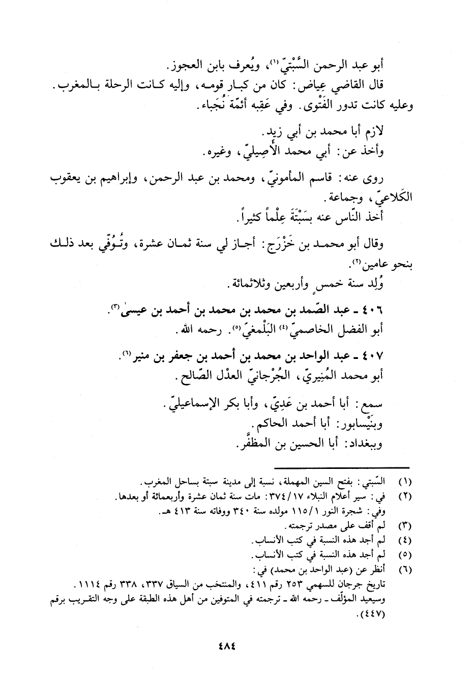 [2] في: سير أعلام النبلاء 17/ 374: مات سنة ثمان عشرة وأربعمائة أو بعدها.