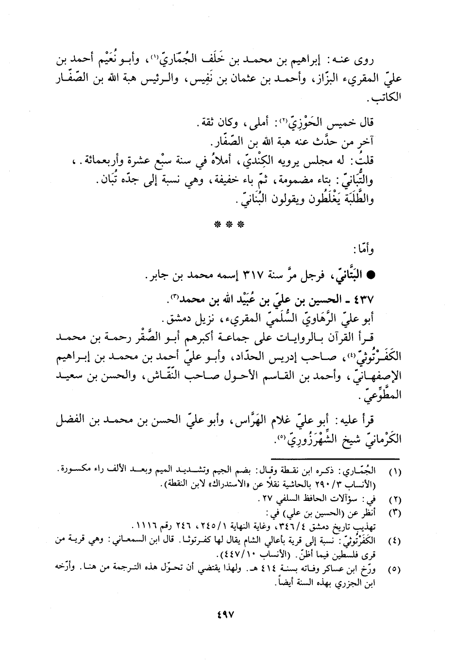 [1] الجمّاري: ذكره ابن نقطة وقال: بضم الجيم وتشديد الميم وبعد الألف راء مكسورة.