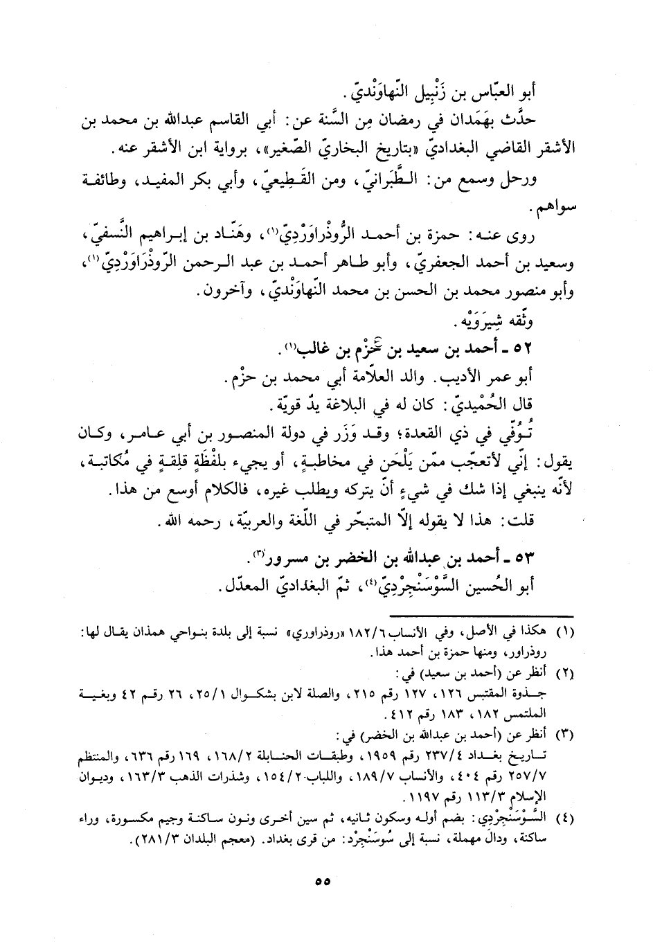 [4] السّوسنجردي: بضم أوله وسكون ثانيه، ثم سين أخرى ونون ساكنة وجيم مكسورة، وراء ساكنة، ودال مهملة، نسبة إلى سوسنجرد: من قرى بغداد. (معجم البلدان 3/ 281) .
