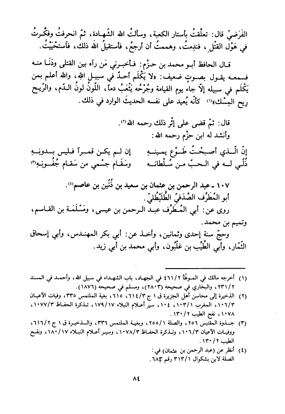 [3] جذوة المقتبس 256، والصلة 1/ 255، وبغية الملتمس 336، والذخيرة ق 1 ج 2/ 616، ووفيات الأعيان 3/ 106، وتذكرة الحفاظ 3/ 1078، وسير أعلام النبلاء 17/ 180، ونفح الطيب 2/ 130.