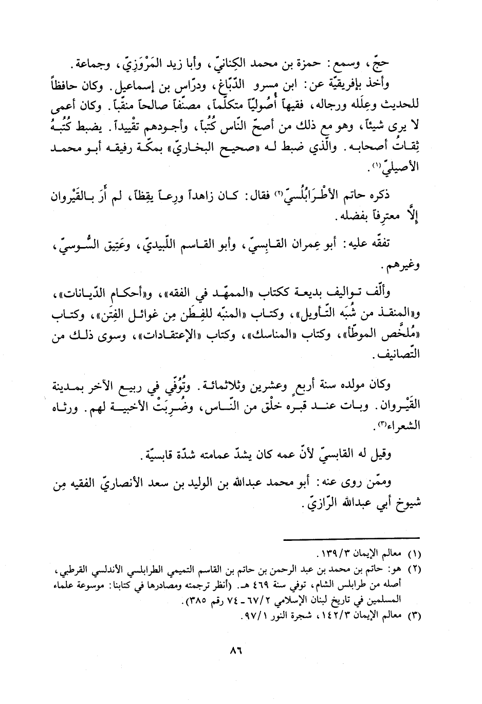 [2] هو: حاتم بْن مُحَمَّد بْن عَبْد الرَّحْمَن بْن حاتم بن القاسم التميمي الطرابلسي الأندلسي القرطبي، أصله من طرابلس الشام، توفي سنة 469 هـ. (انظر ترجمته ومصادرها في كتابنا: موسوعة علماء المسلمين في تاريخ لبنان الإسلامي 2/ 67- 74 رقم 385) .