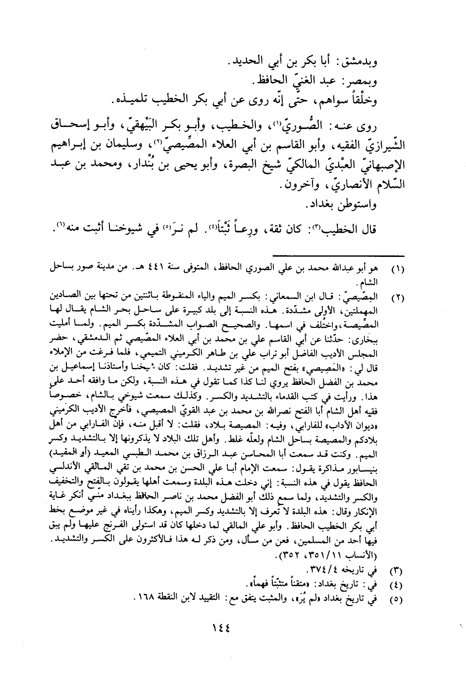 [1] هو أبو عبد الله محمد بن علي الصوري الحافظ، المتوفى سنة 441 هـ. من مدينة صور بساحل الشام.