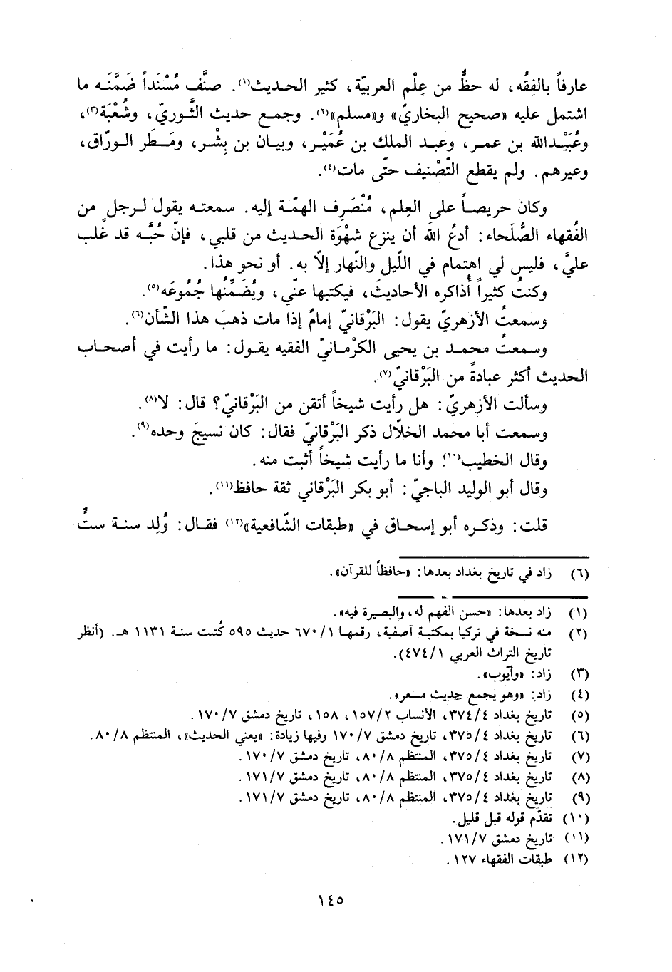 وسمعتُ الأزهريّ يقول: البَرْقانيّ إمامٌ إذا مات ذهبَ هذا الشّأن [6] .
