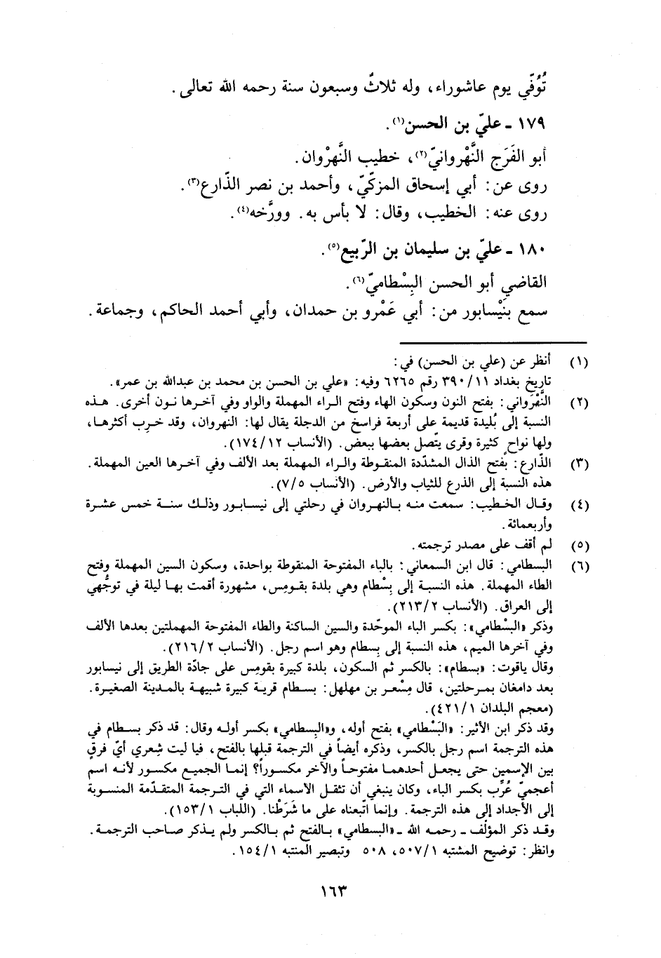 [2] النّهرواني: بفتح النون وسكون الهاء وفتح الراء المهملة والواو وفي آخرها نون أخرى. هذه النسبة إلى بليدة قديمة على أربعة فراسخ من الدجلة يقال لها: النهروان، وقد خرب أكثرها.
