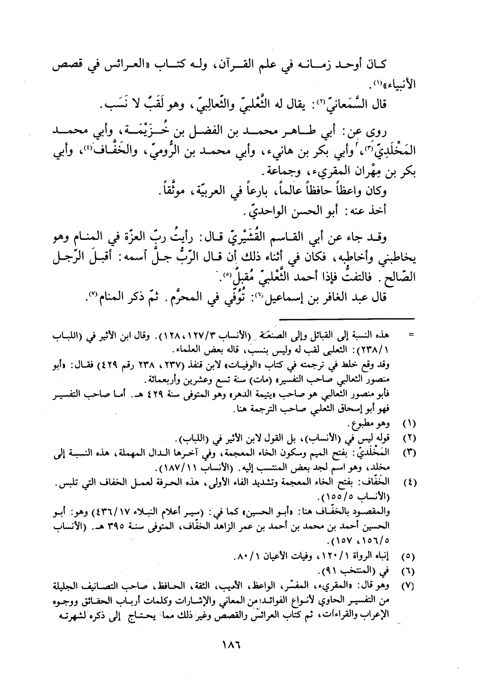 [ () ] هذه النسبة إلى القبائل وإلى الصنعة (الأنساب 3/ 127، 128) . وقال ابن الأثير في (اللباب 1/ 238) : الثعلبي لقب له وليس بنسب، قاله بعض العلماء.