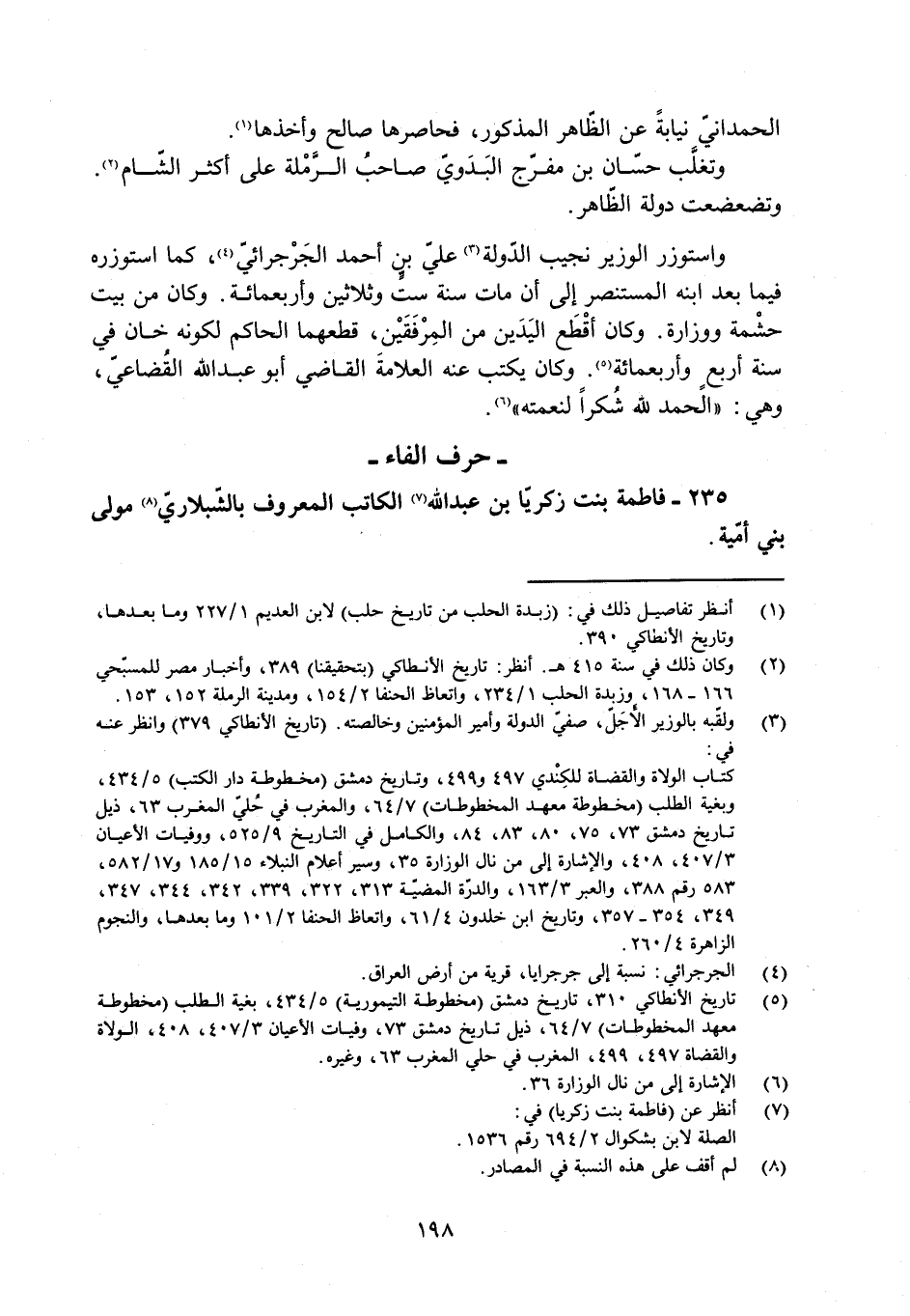 235- فاطمة بنت زكريّا بن عبد الله [7] الكاتب المعروف بالشّبلاريّ [8] مولى بني أميّة.