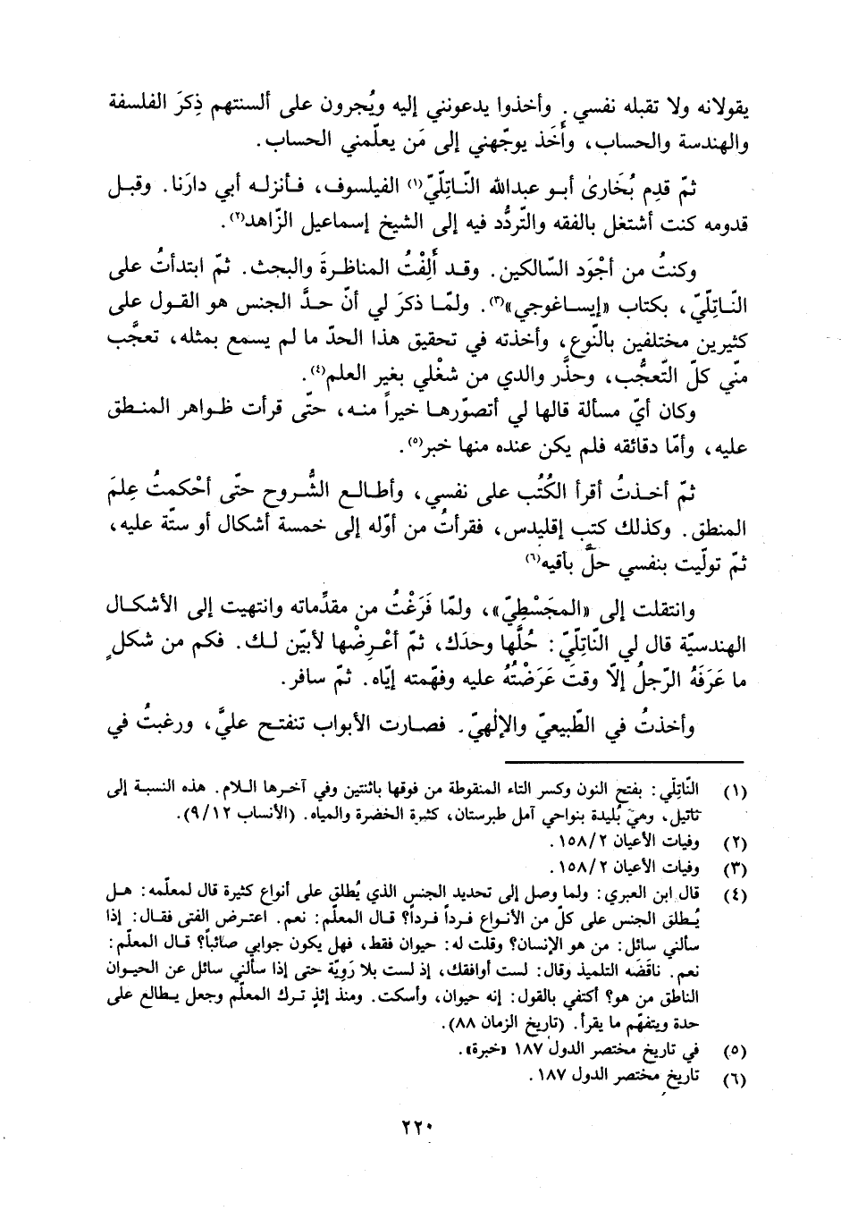 ثمّ قدِم بُخَارى أبو عبد الله النّاتِلّيّ [1] الفيلسوف، فأنزله أبي دارَنا. وقبل قدومه كنت أشتغل بالفقه والتّردّد فيه إلى الشّيخ إسماعيل الزّاهد [2] .