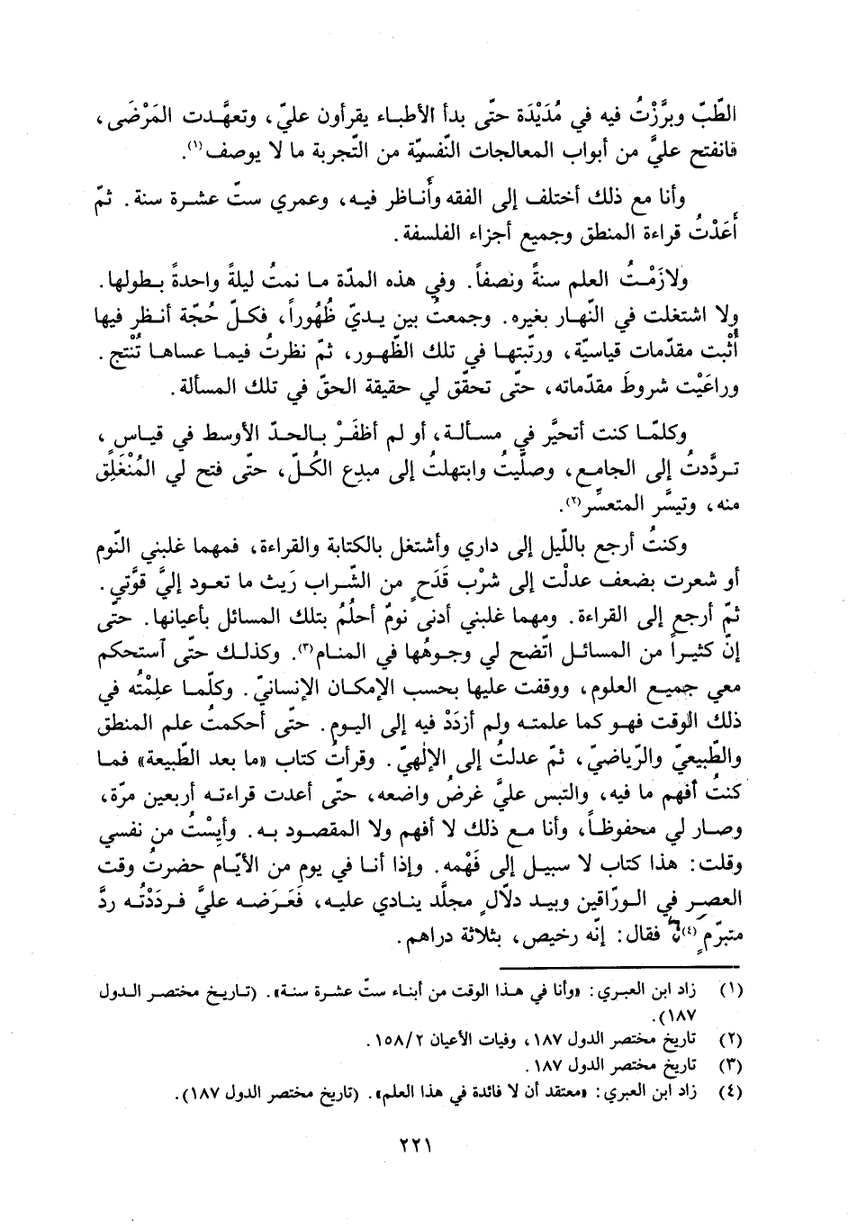 [4] زاد ابن العبري: «معتقد أن لا فائدة في هذا العلم» . (تاريخ مختصر الدول 187) .