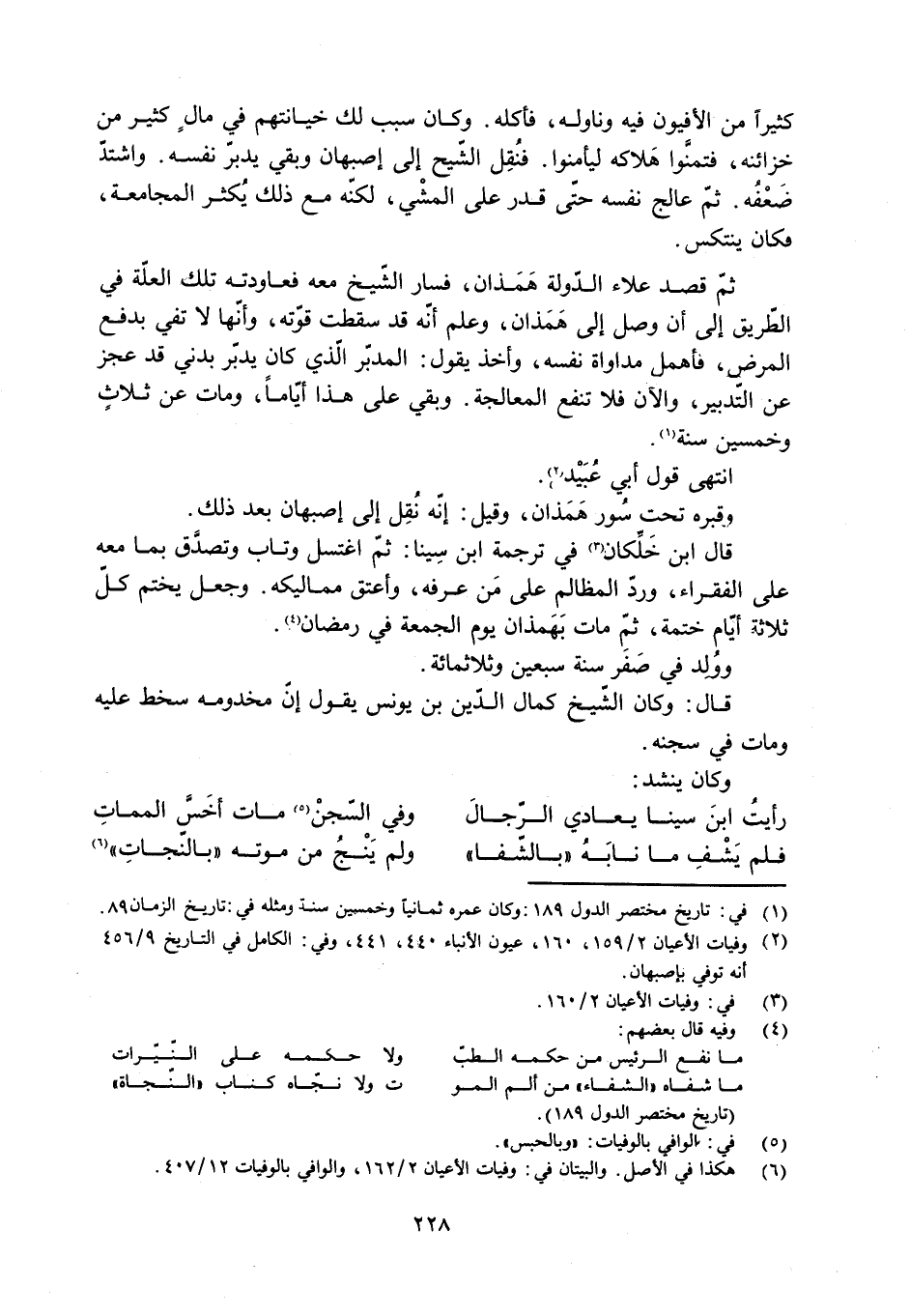 رأيتُ ابن سِينَا يعادي الرّجالَ ... وفي السّجنِ [5] مات أخسَّ المماتِ