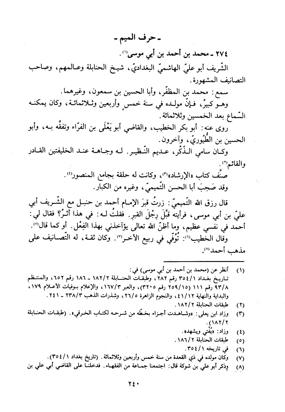 الشّريف أبو عليّ الهاشميّ البغداديّ. شيخ الحنابلة وعالمهم، وصاحب التّصانيف المشهورة.