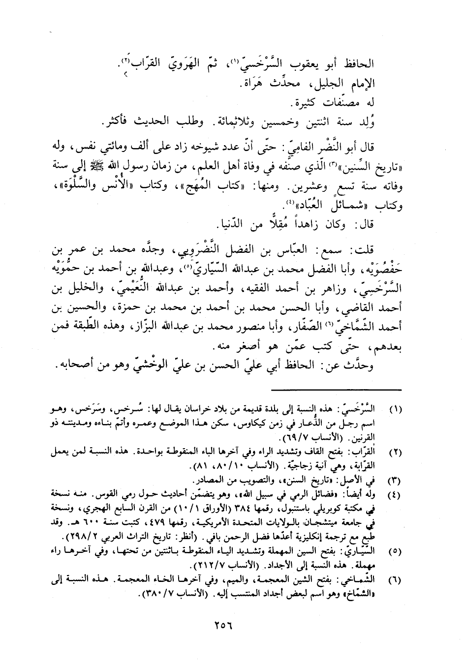 قلت: سمع: العبّاس بن الفضل النّضرويي، وجدّه محمد بن عمر بن حَفْصُوَيْه، وأبا الفضل محمد بن عبد الله السّيّاريّ [5] ، وعبد الله بن أحمد بن حَمُّوَيْه السَّرْخَسِيّ، وزاهر بن أحمد الفقيه، وأحمد بن عبد الله النُّعَيْميّ، والخليل بن أحمد القاضي، وأبا الحسن محمد بن أحمد بن محمد بن حمزة، والحسين بن أحمد الشّمَّاخِيّ [6] الصّفّار، وأبا منصور محمد بن عبد الله البزّاز، وهذه الطّبقة فمن بعدهم، حتّى كتب عمّن هو أصغر منه.