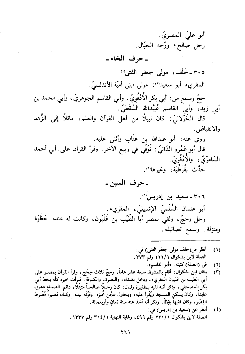 الصلة لابن بشكوال 1/ 220 رقم 499، وغاية النهاية 1/ 304 رقم 1337.