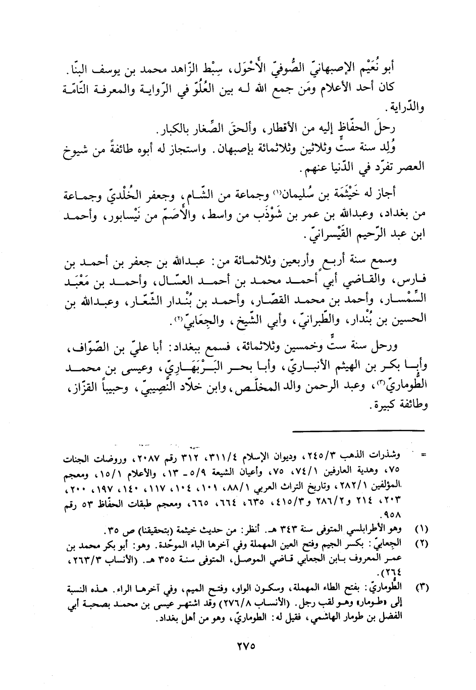 [2] الجعابيّ: بكسر الجيم وفتح العين المهملة وفي آخرها الباء الموحّدة. وهو: أبو بكر محمد بن عمر المعروف بابن الجعابيّ قاضي الموصل، المتوفى سنة 355 هـ. (الأنساب 3/ 263، 264) .