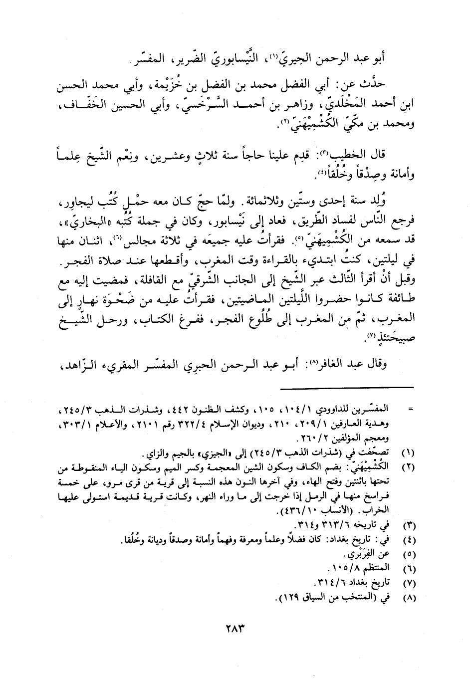 وقال عبد الغافر [8] : أبو عبد الرحمن الحبري المفسّر المقرئ الزّاهد،