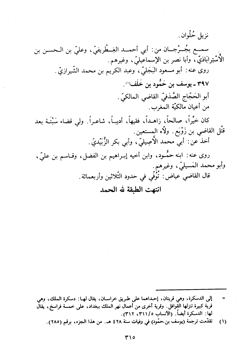 [1] تقدّمت ترجمة (يوسف بن حمّود) في وفيات سنة 428 هـ. من هذا الجزء، برقم (285) .
