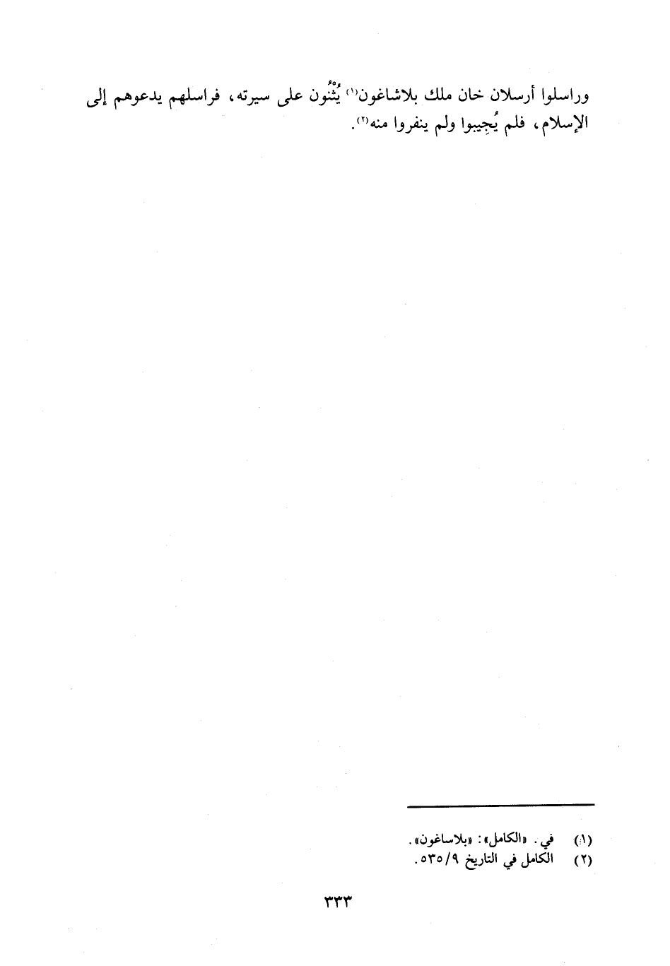 وراسلوا أرسلان خان ملك بلاشاغون [1] يُثْنُون على سيرته، فراسلهم يدعوهم إلى الإسلام، فلم يُجِيبوا ولم ينفروا منه [2] .