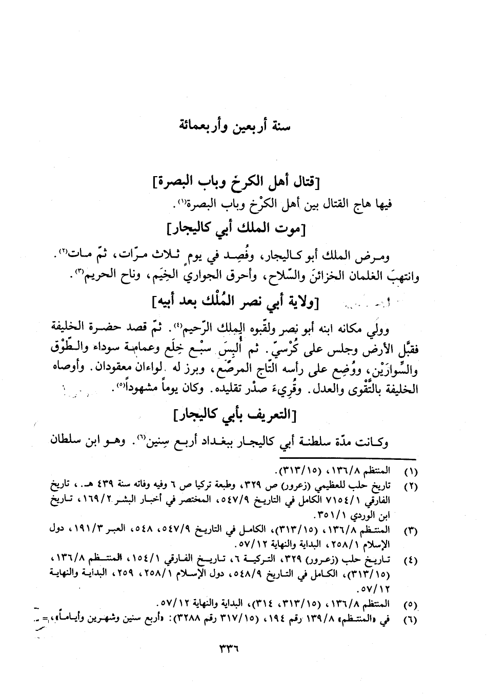 [4] تاريخ حلب (زعرور) 329، التركية 6، تاريخ الفارقيّ 1/ 154، المنتظم 8/ 136، (15/ 313) ، الكامل في التاريخ 9/ 548، دول الإسلام 1/ 258، 259، البداية والنهاية 12/ 57.