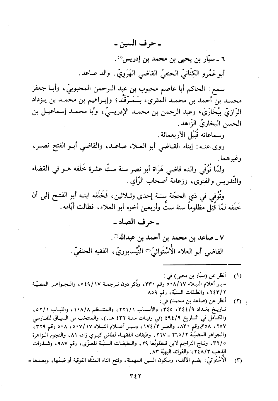تاريخ بغداد 9/ 344، 345، والأنساب 1/ 221، والمنتظم 8/ 108، واللباب 1/ 52، والكامل في التاريخ 9/ 494 (في وفيات سنة 432 هـ.) ، والمنتخب من السياق للفارسي 257، 258 رقم 830، والعبر 3/ 174، وسير أعلام النبلاء 17/ 507، 508 رقم 329، والجواهر المضيّة 2/ 265- 267، وطبقات الفقهاء لطاش كبرى زاده 81، والنجوم الزاهرة 5/ 32، وتاج التراجم لابن قطلوبغا 29، والطبقات السنيّة للغزيّ، رقم 987، وشذرات الذهب 3/ 248، والفوائد البهيّة 83.
