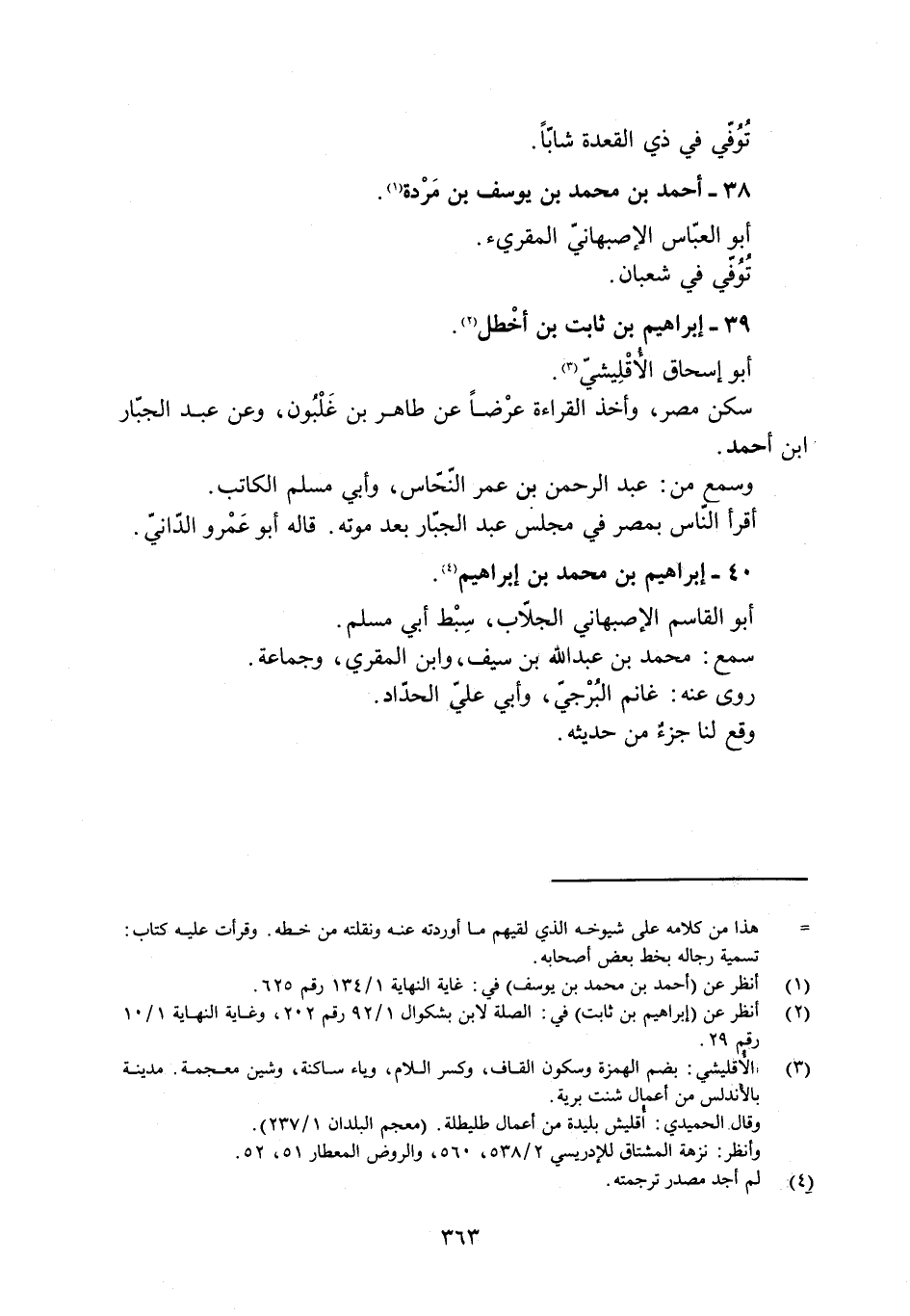 [2] انظر عن (إبراهيم بن ثابت) في: الصلة لابن بشكوال 1/ 92 رقم 202، وغاية النهاية 1/ 10 رقم 29.