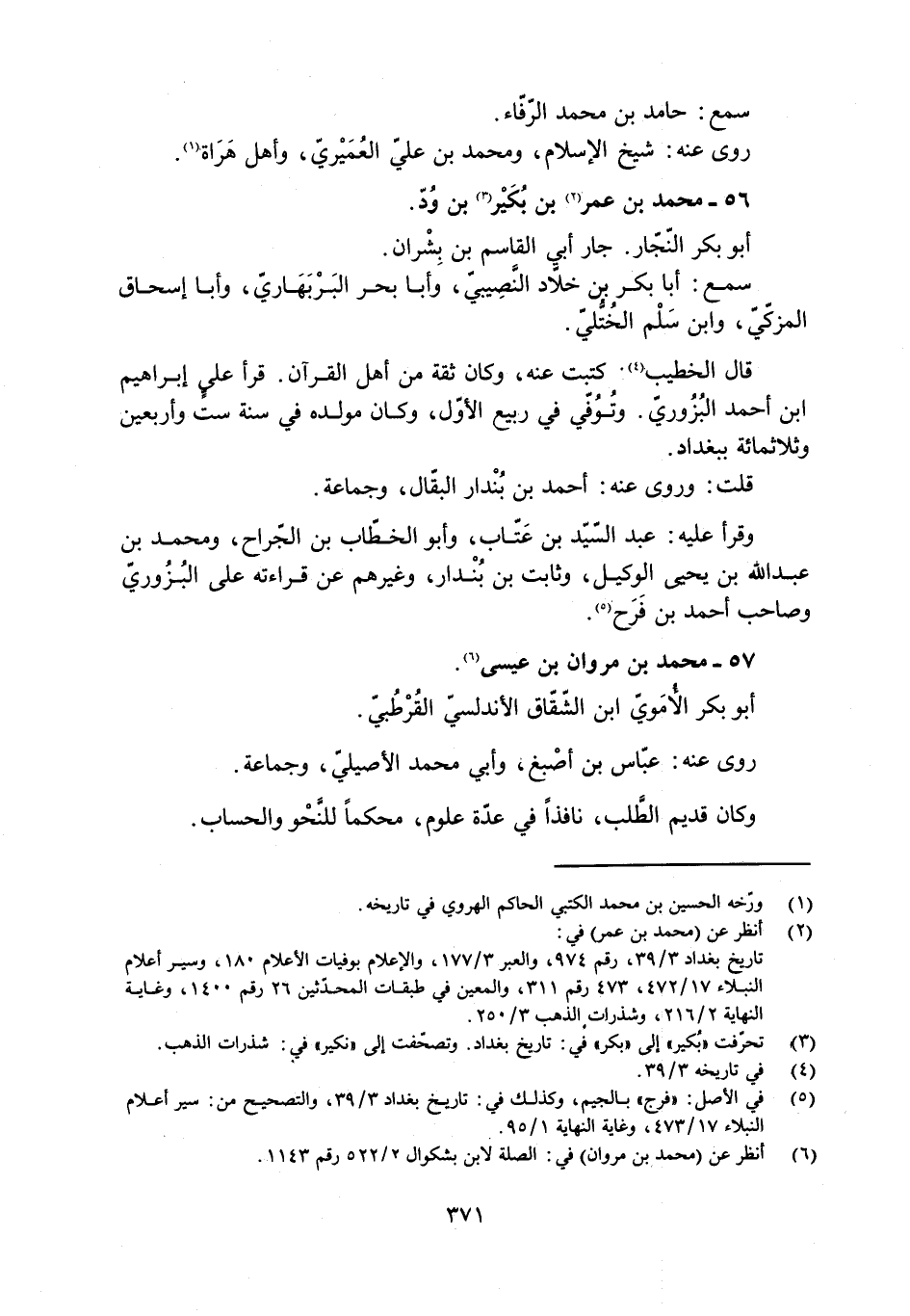 [3] تحرّفت «بكير» إلى «بكر» في: تاريخ بغداد. وتصحّفت إلى «نكير» في: شذرات الذهب.
