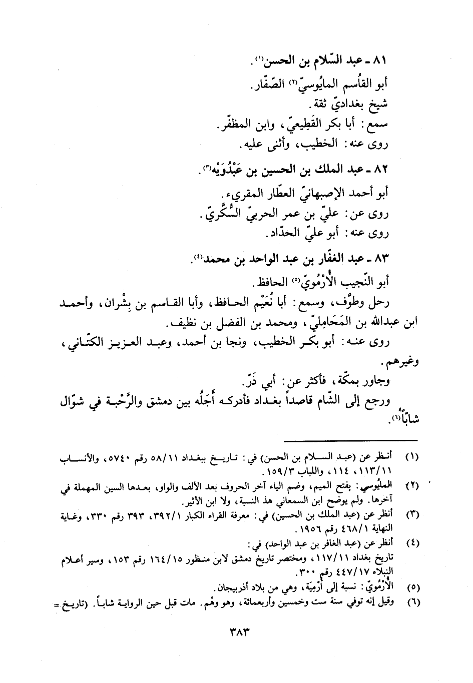 [1] انظر عن (عبد السلام بن الحسن) في: تاريخ ببغداد 11/ 58 رقم 5740، والأنساب 11/ 113، 114، واللباب 3/ 159.