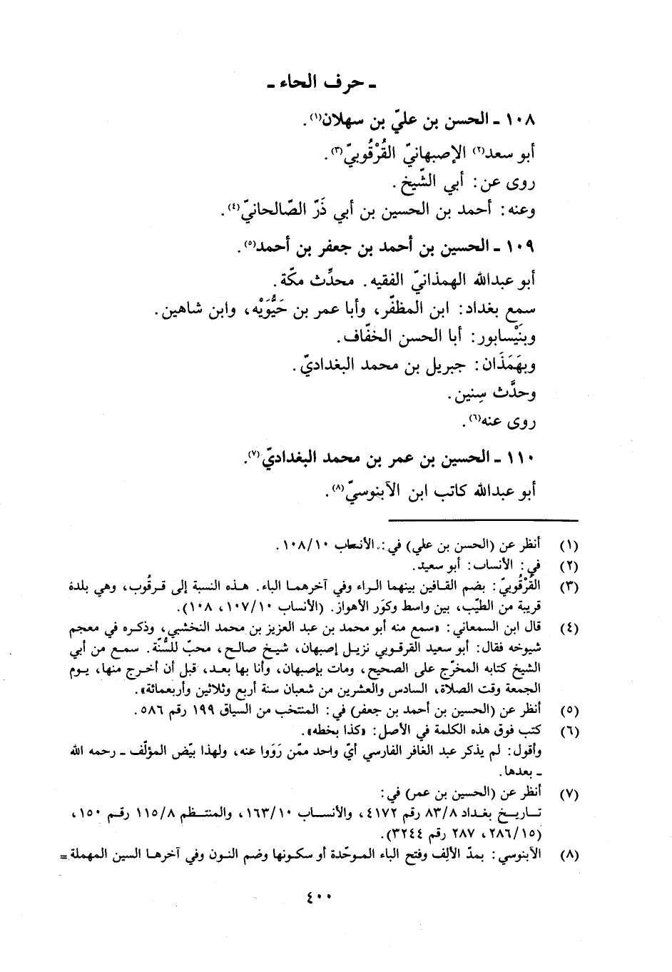 [5] انظر عن (الحسين بن أحمد بن جعفر) في: المنتخب من السياق 199 رقم 586.