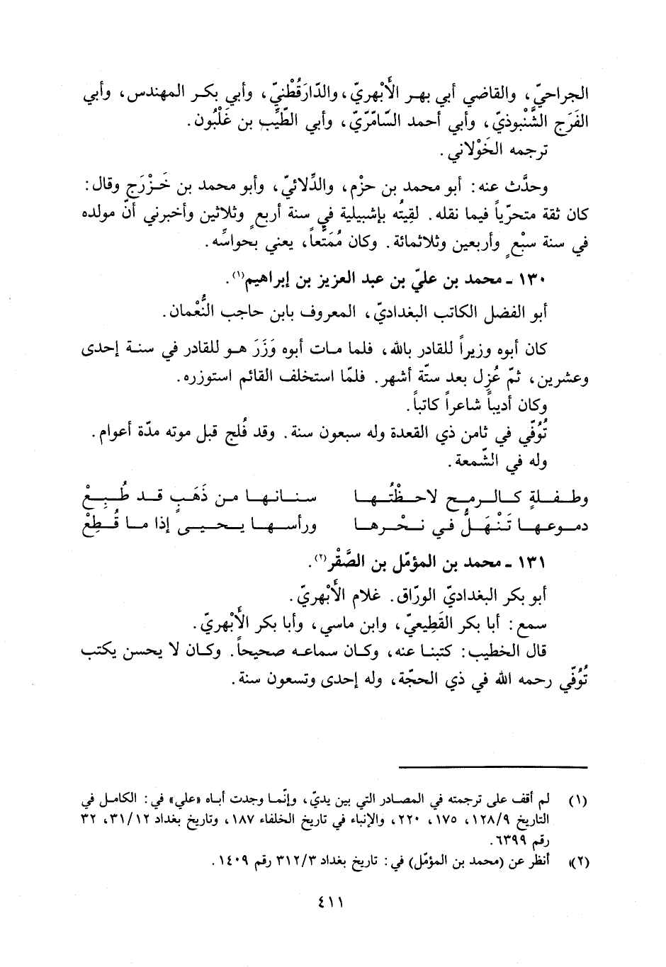 [2] انظر عن (محمد بن المؤمّل) في: تاريخ بغداد 3/ 312 رقم 1409.