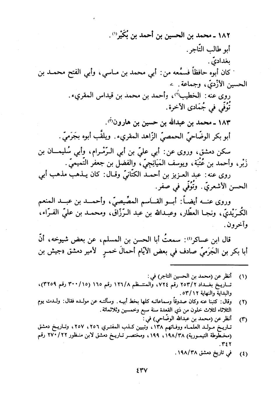 [1] انظر عن (محمد بن الحسين التاجر) في: