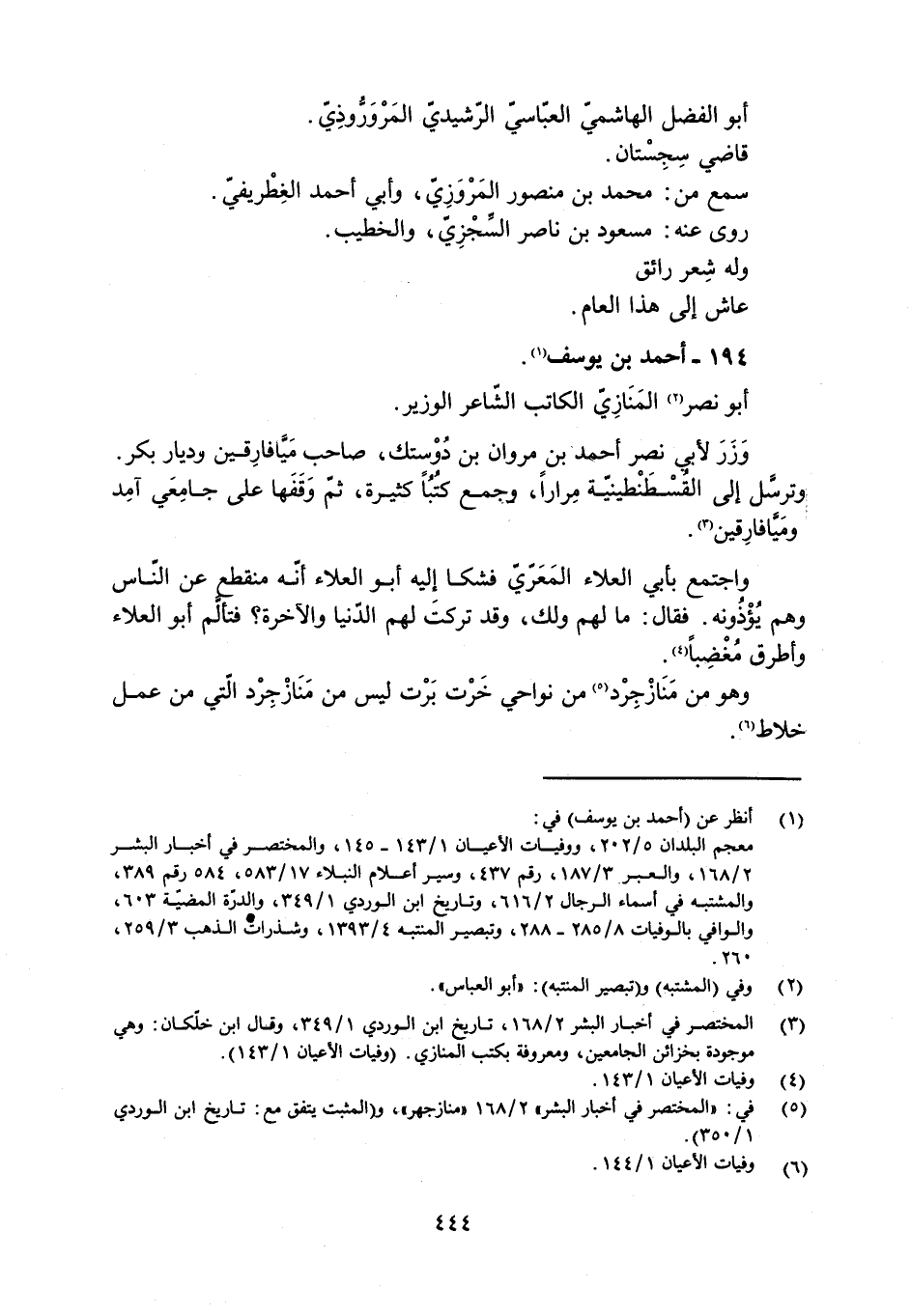 وهو من مَنَازْجِرْد [5] من نواحي خَرْت بَرْت ليس من مَنَازْجِرْد الّتي من عمل خلاط [6] .