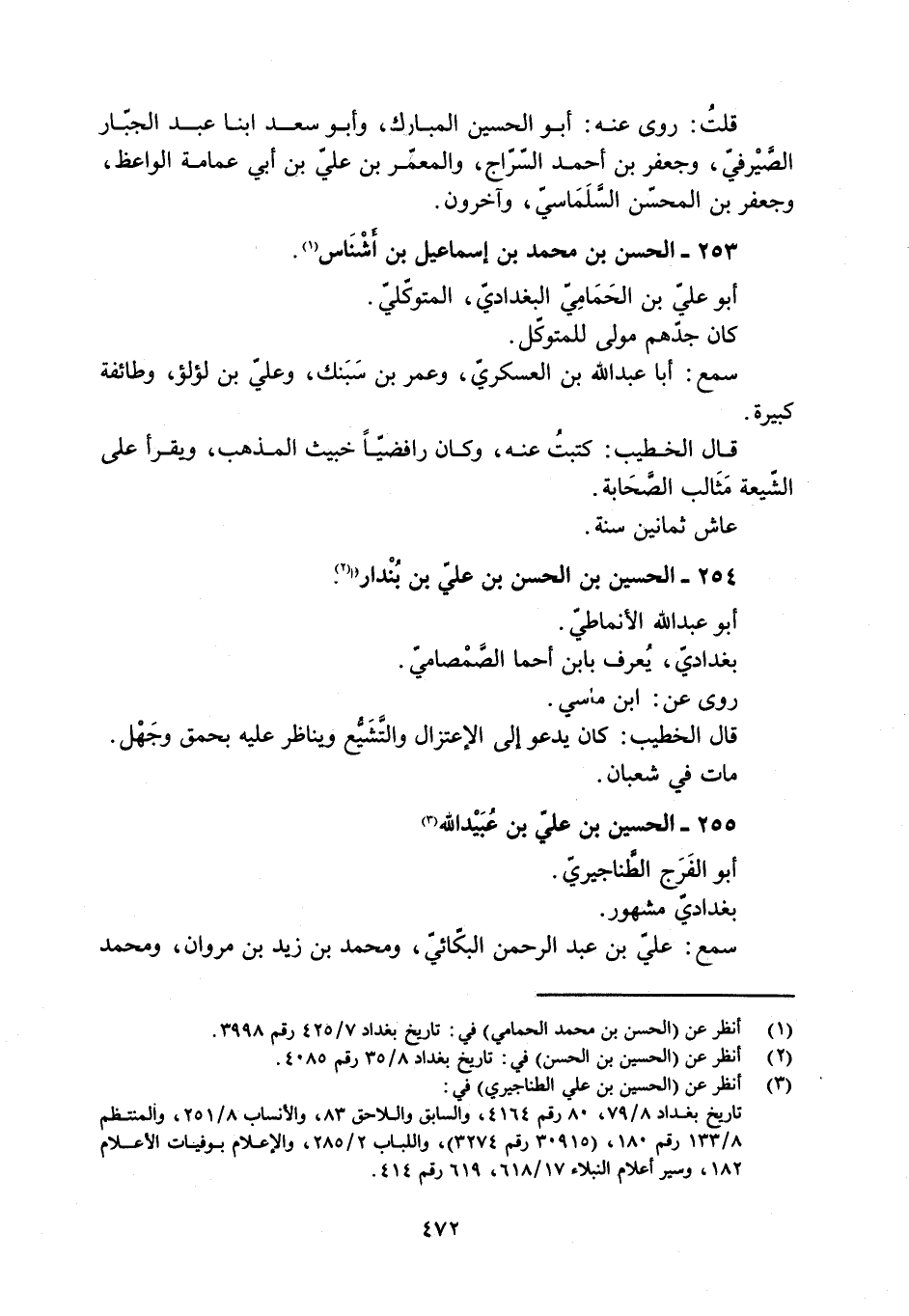 [1] انظر عن (الحسين بن محمد الحمامي) في: تاريخ بغداد 7/ 425 رقم 3998.