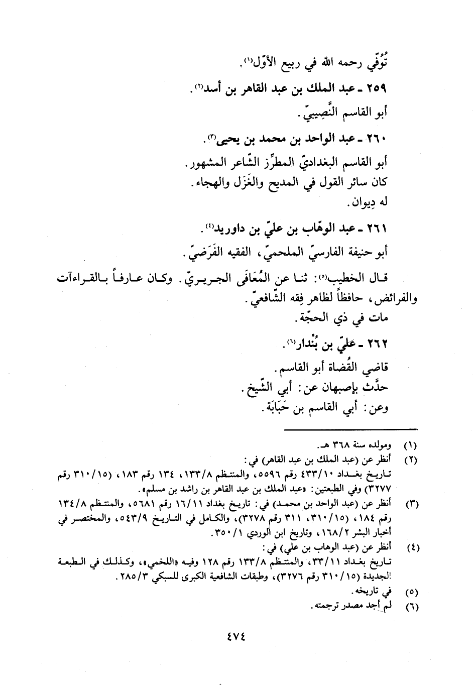 تاريخ بغداد 10/ 433 رقم 5596، والمنتظم 8/ 133، 134 رقم 183، (15/ 310 رقم 3277) وفي الطبعتين: «عبد الملك بن عبد القاهر بن راشد بن مسلم» .