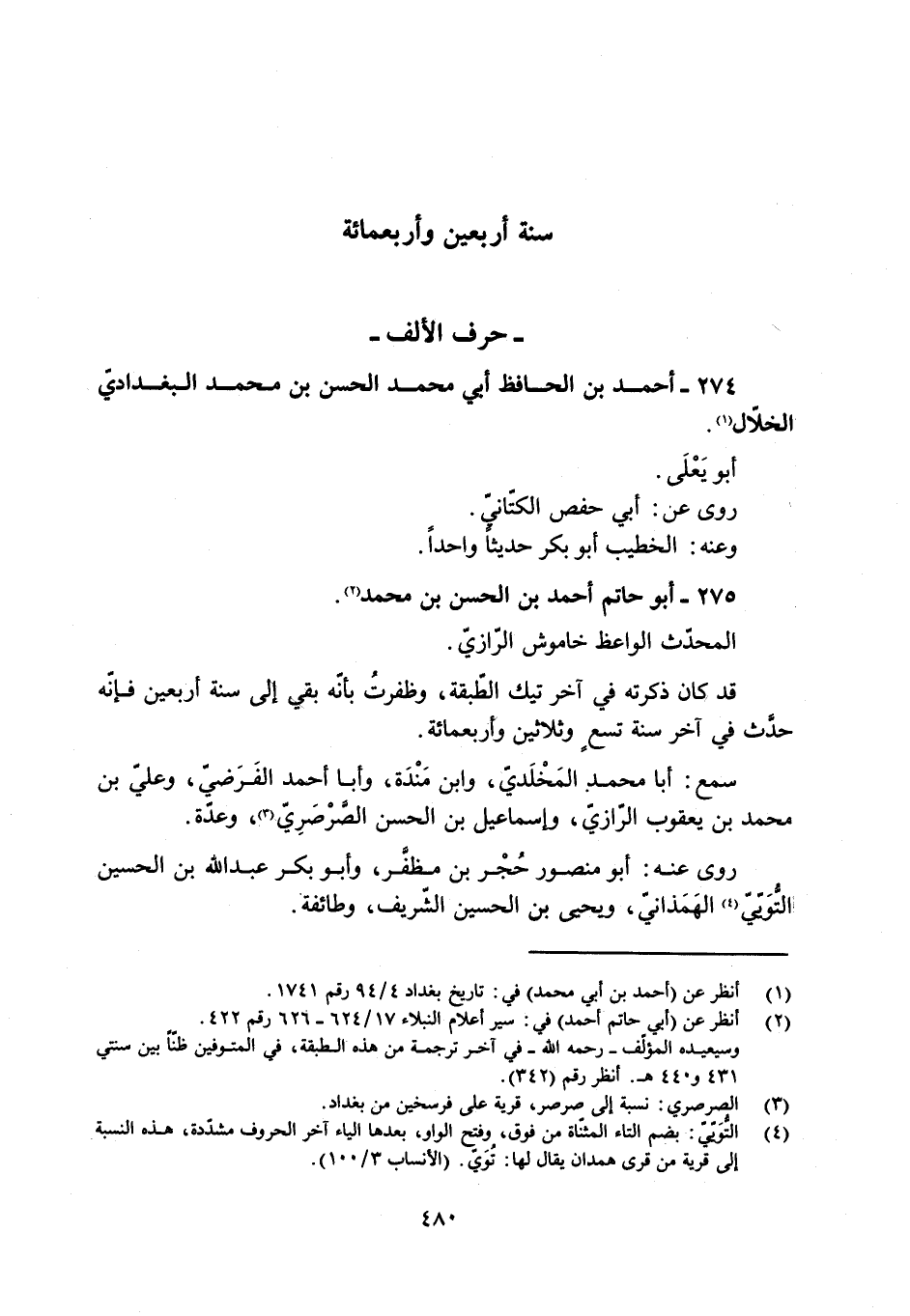 وسيعيده المؤلّف- رحمه الله- في آخر ترجمة من هذه الطبقة، في المتوفين ظنّا بين سنتي 431 و 440 هـ. انظر رقم (342) .