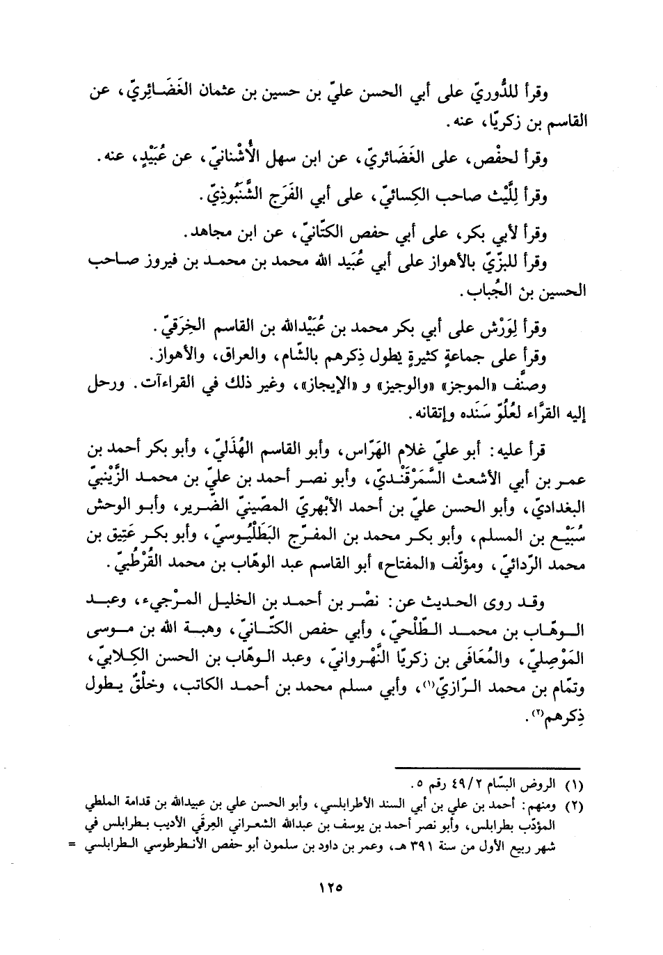 [2] ومنهم: أحمد بن علي بن أبي السند الأطرابلسي، وأبو الحسن علي بن عبيد الله بن قدامة الملطي المؤدّب بطرابلس، وأبو نصر أحمد بن يوسف بن عبد الله الشعراني العرقي الأديب بطرابلس في شهر ربيع الأول من سنة 391 هـ، وعمر بْن دَاوُد بْن سلمون أَبُو حفص الْأنْطَرَطُوسي الطرابلسي-