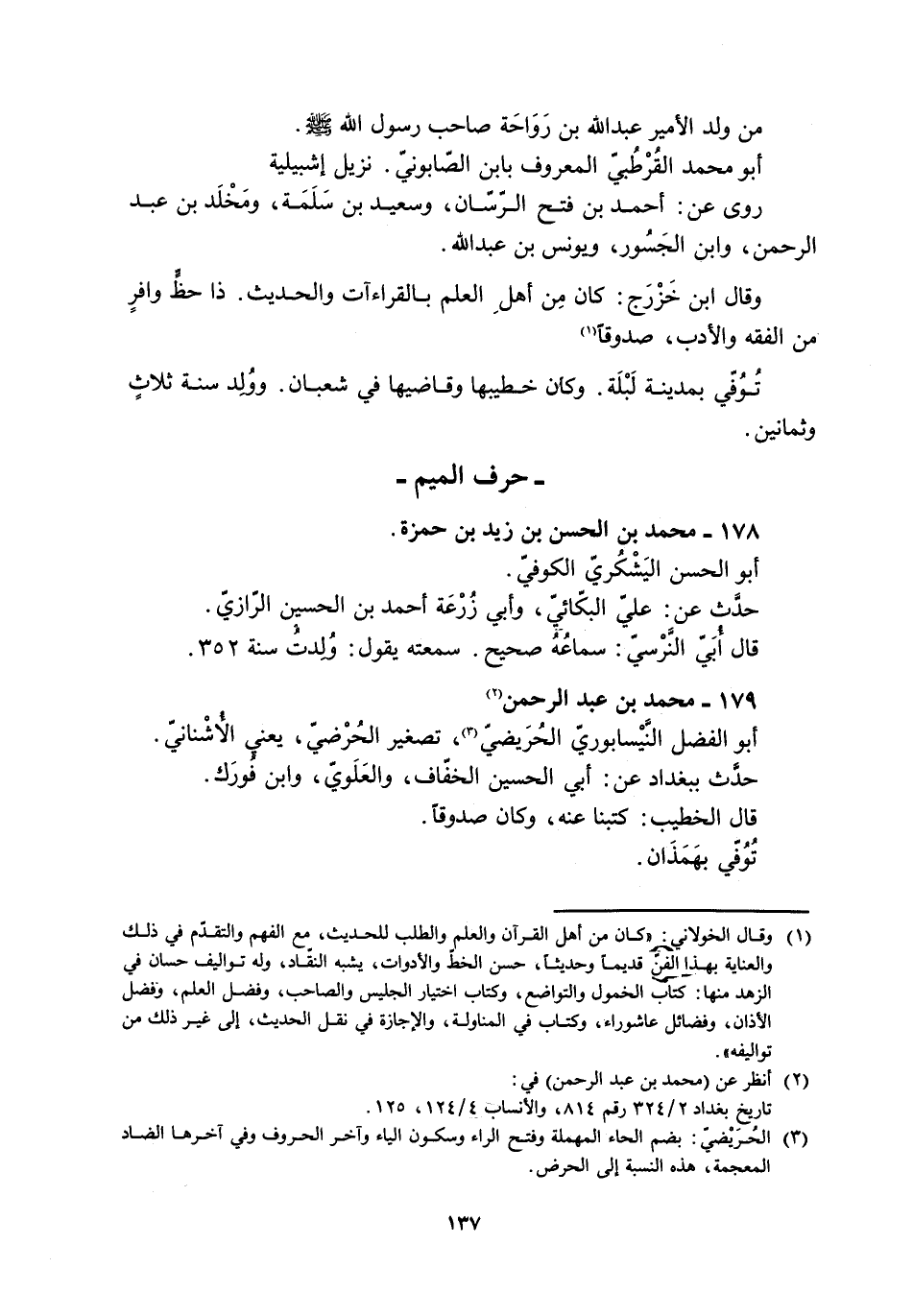 179- محمد بن عبد الرحمن [2] أبو الفضل النَّيْسَابُوريّ الحُرَيْضِيّ [3] ، تصغير الحُرْضيّ، يعني الأُشْنَانيّ.