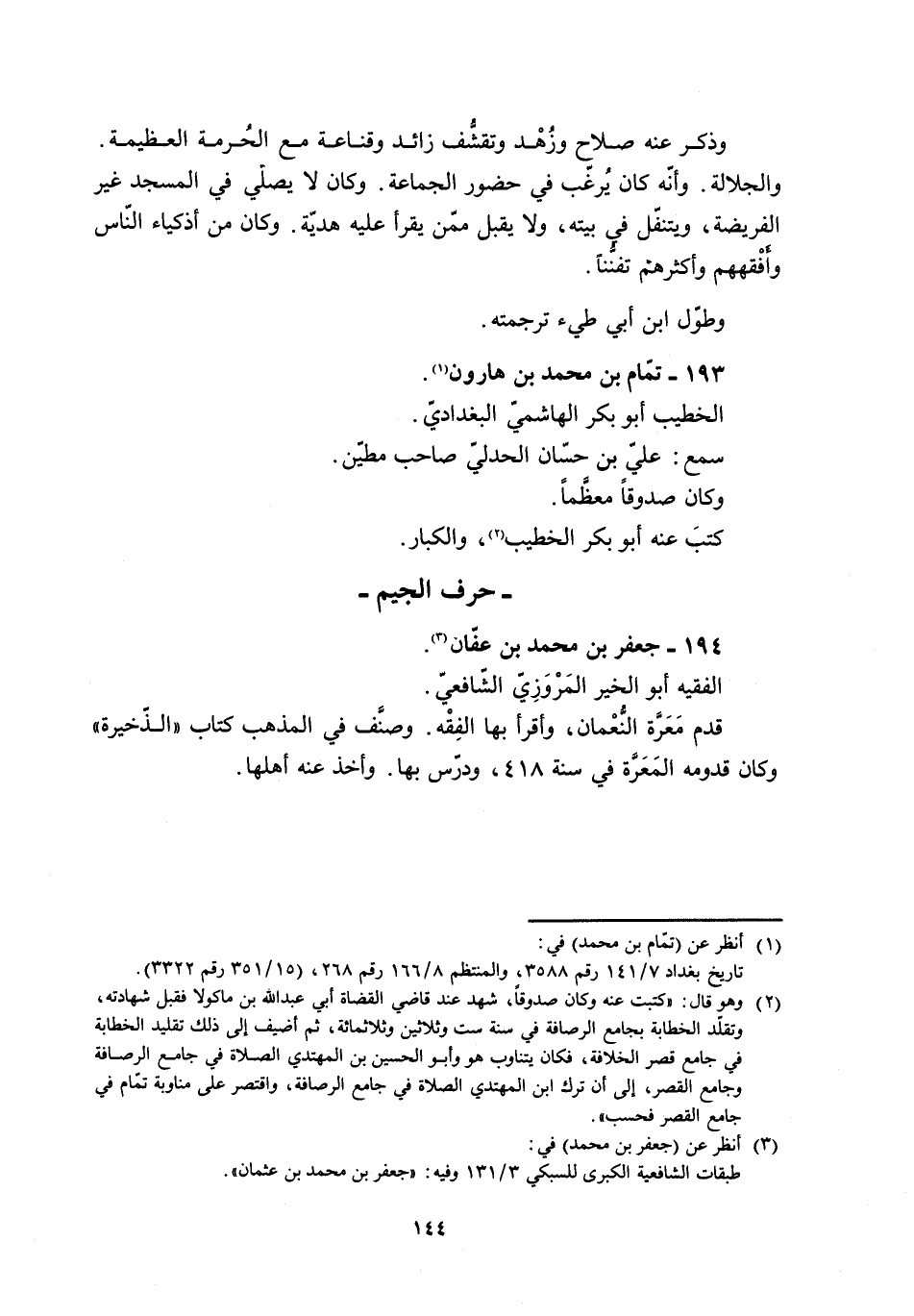 تاريخ بغداد 7/ 141 رقم 3588، والمنتظم 8/ 166 رقم 268، (15/ 351 رقم 3322) .