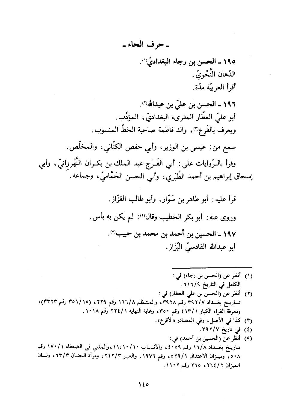 تاريخ بغداد 7/ 392 رقم 3928، والمنتظم 8/ 166 رقم 229، (15/ 351 رقم 3323) ، ومعرفة القراء الكبار 1/ 413 رقم 350، وغاية النهاية 1/ 224 رقم 1018.
