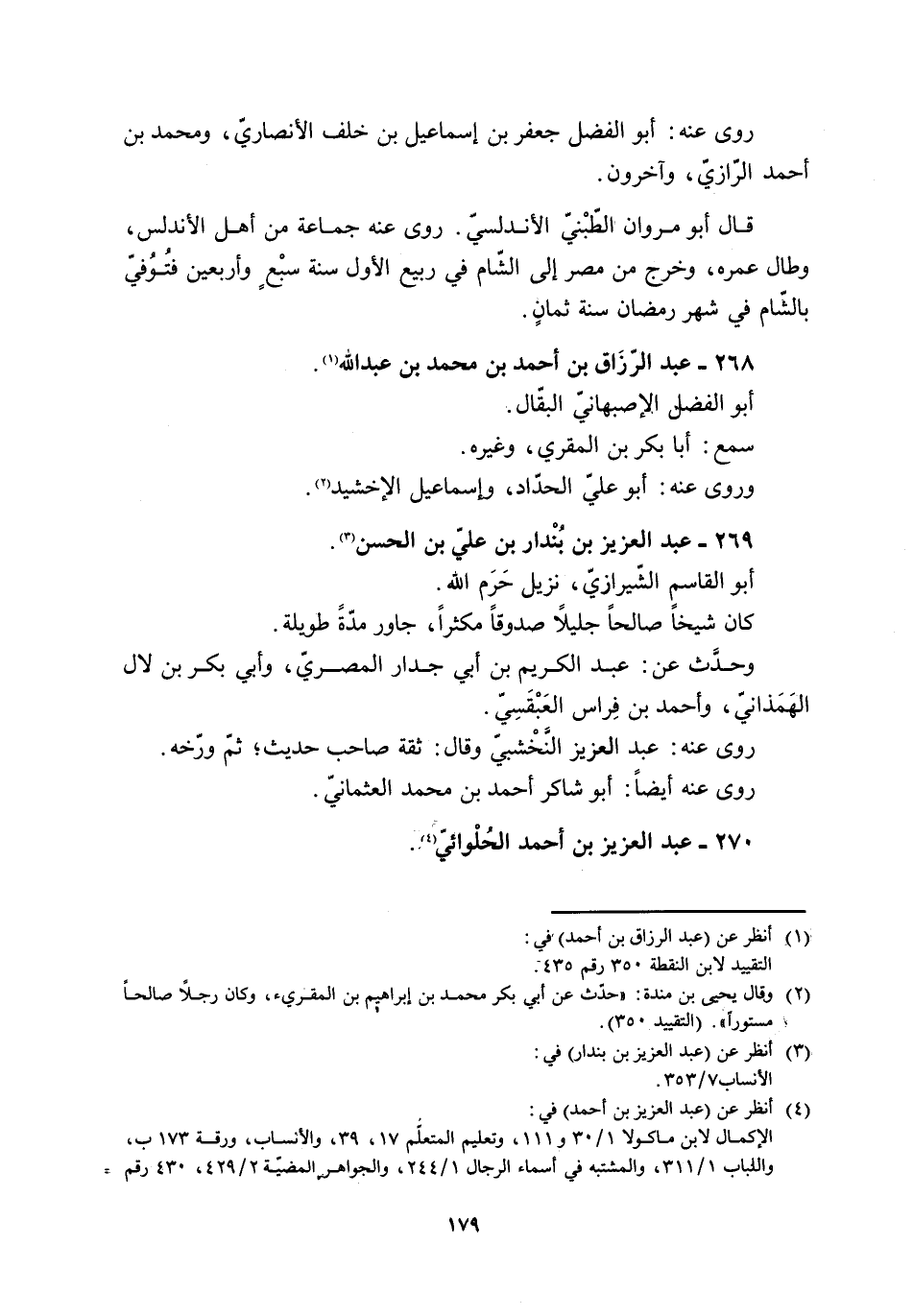 [2] وقال يحيى بن مندة: «حدّث عن أبي بكر محمد بن إبراهيم بن المقرئ، وكان رجلا صالحا مستورا» . (التقييد 350) .