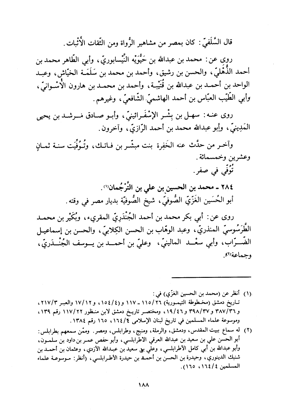 [1] انظر عن (محمد بن الحسين الغزّي) في: