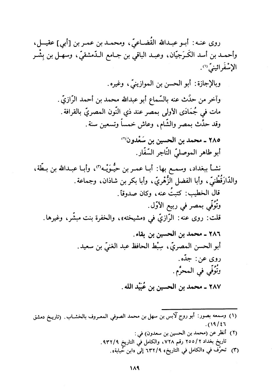 [2] انظر عن (محمد بن الحسين بن سعدون) في: