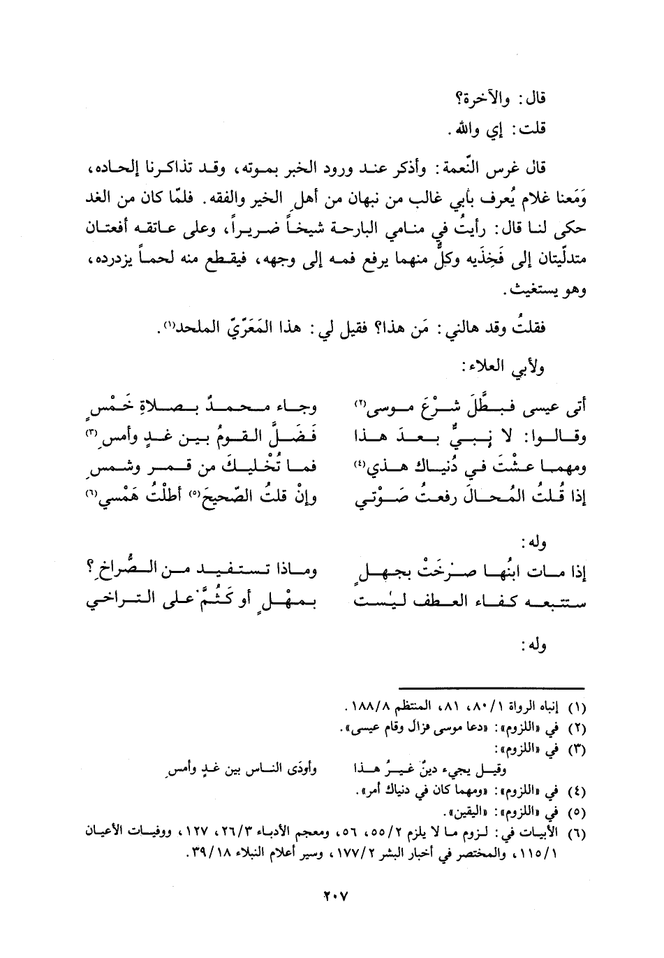 [6] الأبيات في: لزوم ما لا يلزم 2/ 55، 56، ومعجم الأدباء 3/ 26، 127، ووفيات الأعيان 1/ 115، والمختصر في أخبار البشر 2/ 177، وسير أعلام النبلاء 18/ 39.