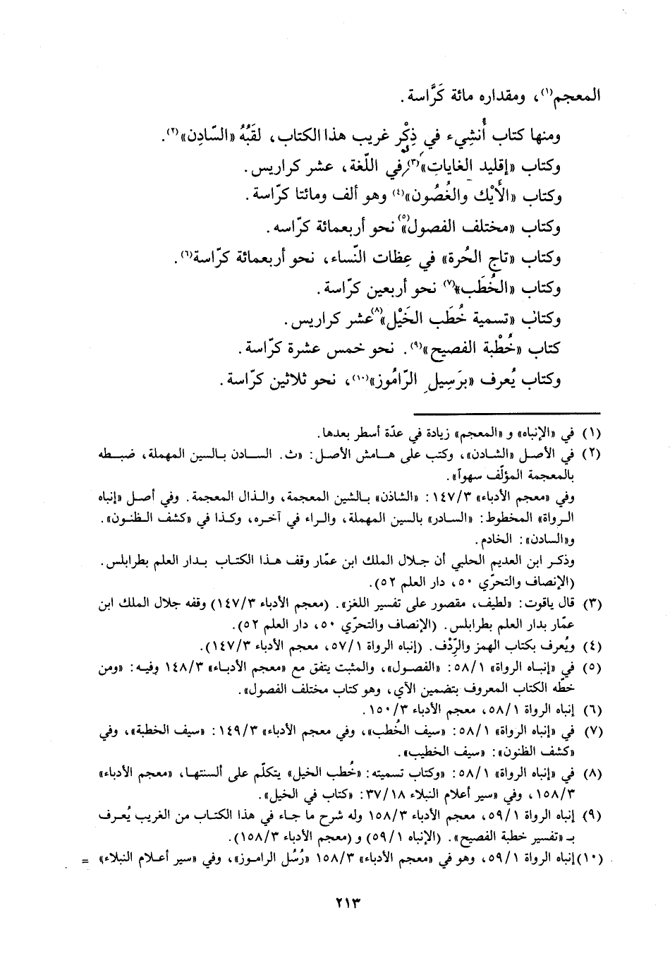 [8] في «إنباه الرواة» 1/ 58: «وكتاب تسميته: «خطب الخيل» يتكلّم على ألسنتها، «معجم الأدباء» 3/ 158، وفي «سير أعلام النبلاء 18/ 37: «كتاب في الخيل» .