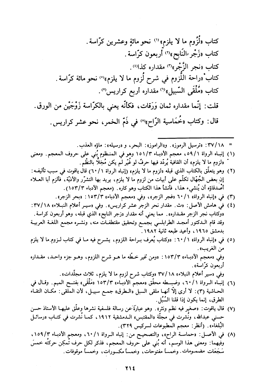 [5] في «إنباه الرواة» 1/ 60: «وكتاب يعرف براحة اللزوم، يشرح فيه ما في كتاب لزوم ما لا يلزم من الغريب» .