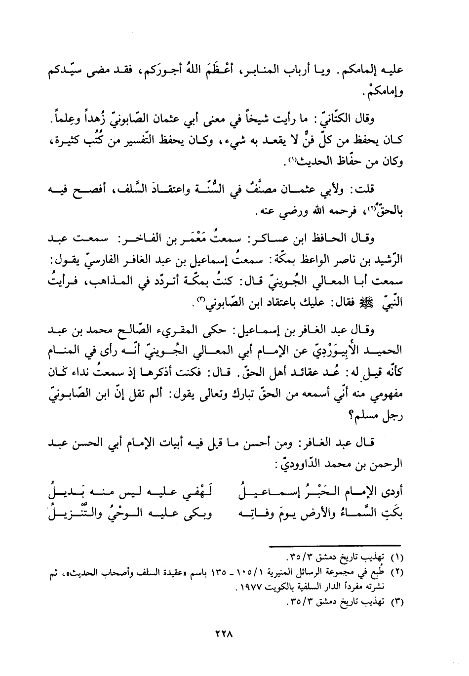 قال عبد الغافر: ومن أحسن ما قيل فيه أبيات الْإِمام أبي الحسن عبد الرَّحمن بن محمد الدّاوديّ: