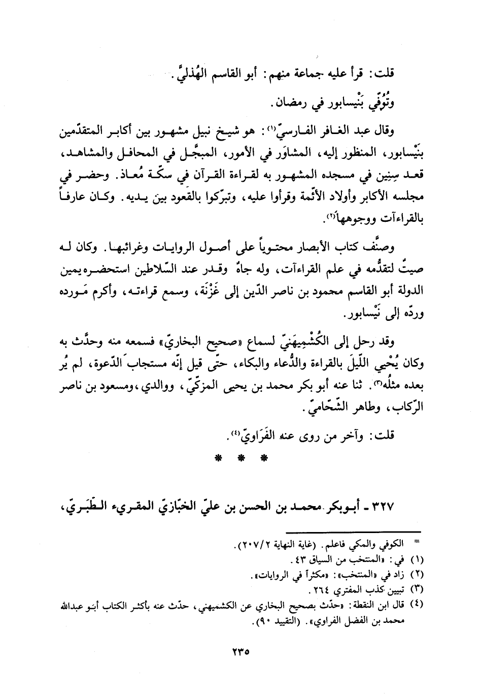 [4] قال ابن النقطة: «حدّث بصحيح البخاري عن الكشميهني، حدّث عنه بأكثر الكتاب أبو عبد اللَّه محمد بن الفضل الفرّاويّ» . (التقييد 90) .