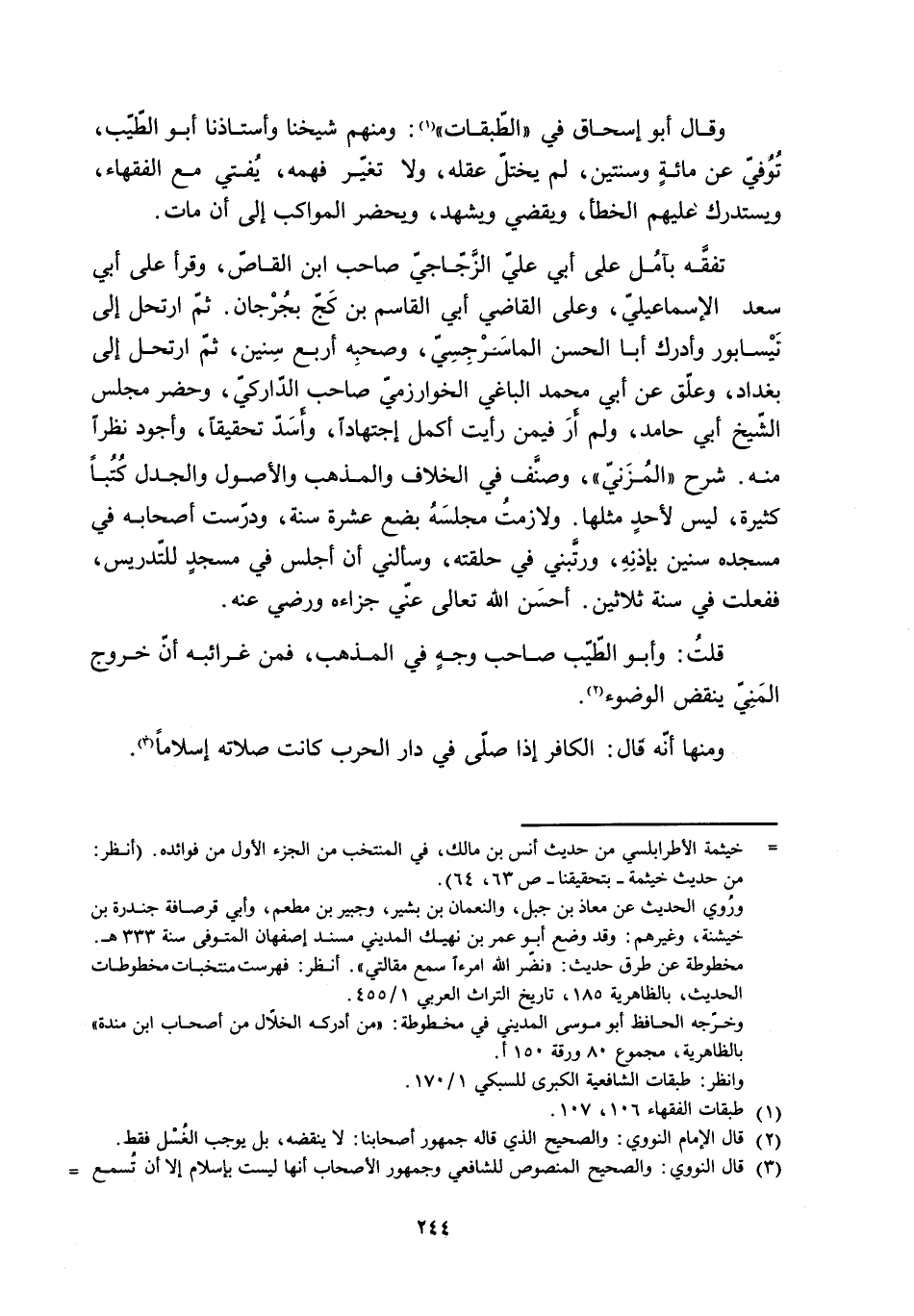 قلت: وأبو الطَّيّب صاحب وجهٍ فِي المذهب، فمن غرائبه أنَّ خروج المنيِّ ينقض الوضوء [2] .